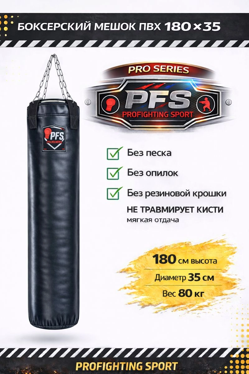 Боксерский мешок ПВХ 180×35 см, 80 кг (PRO SERIES) — ProFightingSport